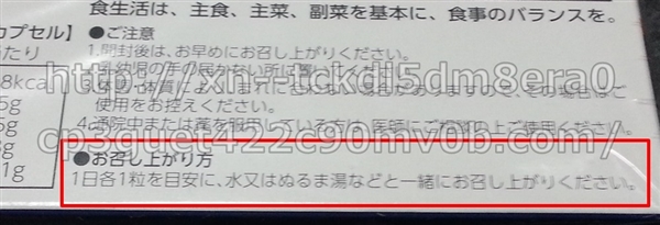 「1日各1粒を目安に、水又はぬるま湯などと一緒にお召し上りください。」