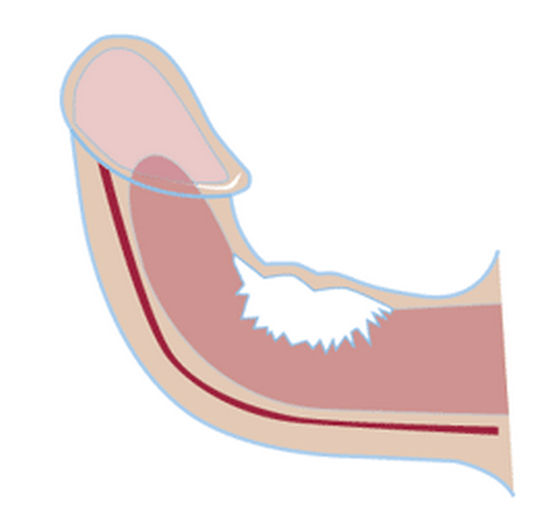 ペロニー病が正式な名称で、ペニスが「く」の字状に曲がってしまう症状です。