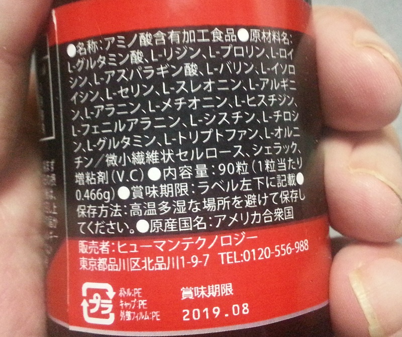 以上のものが配合されています。といっても管理人も薬剤師じゃないので、各アミノ酸がどういった働きをするのか詳しくはわかりませんが、各アミノ酸の前に、「L-」と表記されてますよね。