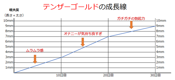 さて、テンザーゴールド服用後最初の10日目での増大率です。