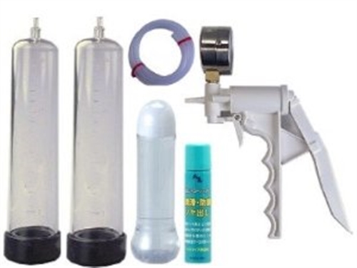 ポンプ式で有名なのは「パワーゲージ」という増大器具です。上の写真がパワーゲージです。勃起したペニスに装着して吸引させる仕組みです。ペニスを下腹部から引っ張り出すような形になるんですね。牽引器具との違いは取り付けが楽で、装着時間も短いという点ですね。
