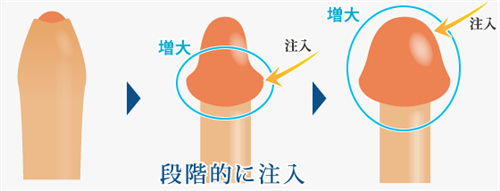 この方法でヒアルロン酸やアクアミド、コラーゲンを注入し、数年間カリ太状態を維持することができます。