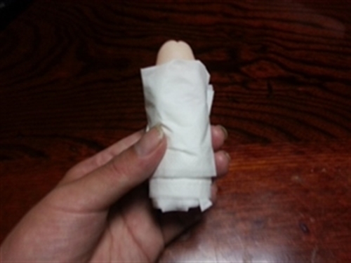 D1枚目のティッシュは軽く根元に巻きます。