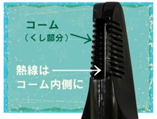 櫛状の部分を「コーム」と言います。ここに発熱する熱線が付いており、その熱線によって陰毛を処理するグッズですね。