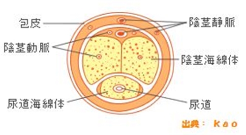 ペニスには、チューブ状の海綿体が3つあるんです。この3つの海綿体はペニス陰茎、根元から先端まで続いています。