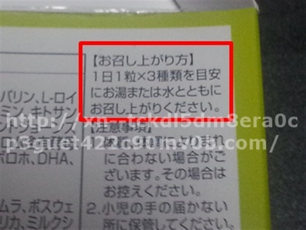 「1日1粒×3種類を目安にお湯または水とともにお召し上りください」